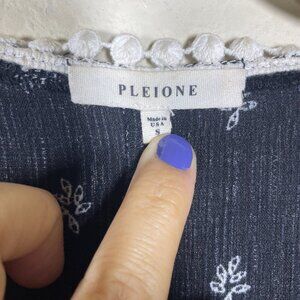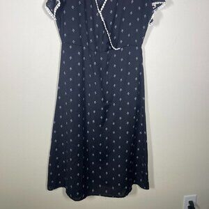 Pleione Women's Printed Trim Detail Maxi V-Neck Black Dress Size S Semi-Sheer!