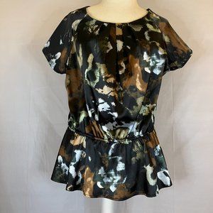 Super silky and feminine Pleione Satin Peplum Blouse Size XL