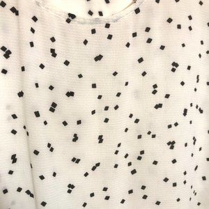 Tie Accent in Front / Crepe Style Feel / White with Black Square Print Throughout