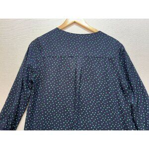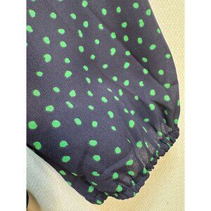 Pleione Womens V-Neck Blouse Top Size L Navy Green Polka Dot 3/4 Sleeve Retro