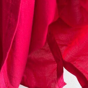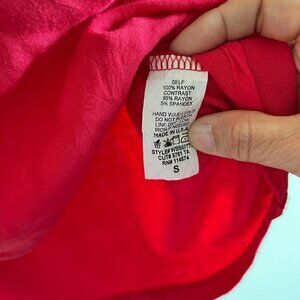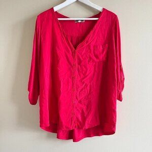 Pleione Women's size S Top Blouse Red V-neck 3/4 sleeves Button Down Pocket