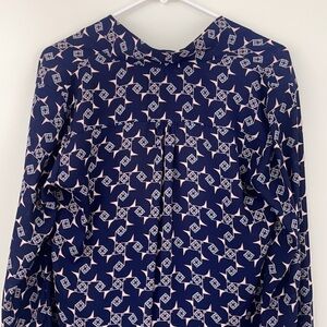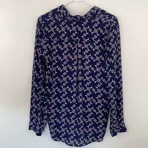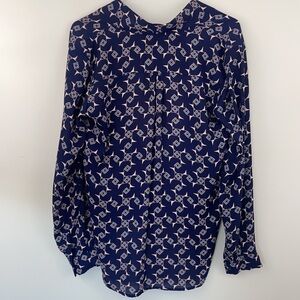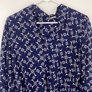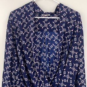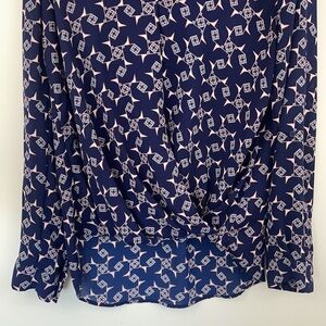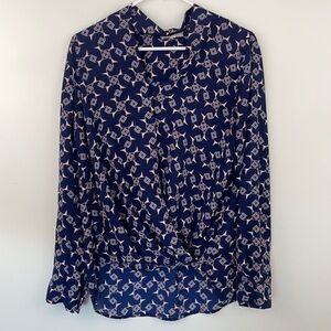 Pleione Wrap Front Long Sleeve Blouse, front button closure.