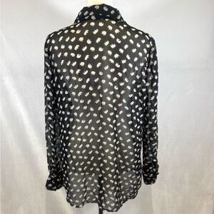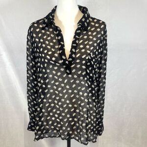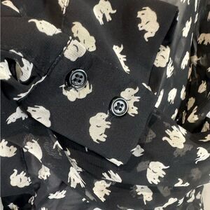 Pleione black and white elephant print vneck long sleeve top size small