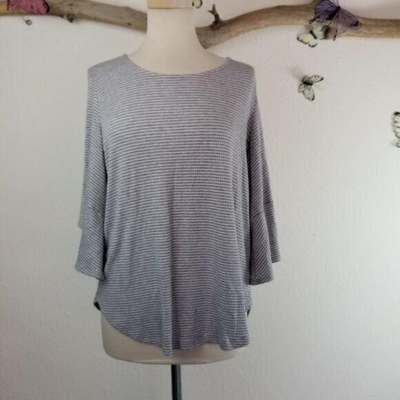 Pleione gray striped 3/4 bell ruffle sleeve top