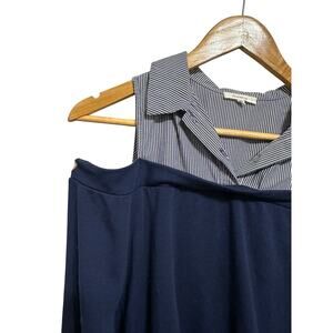 Pleione women's navy cold shoulder sweater layered sweater size Small
