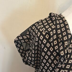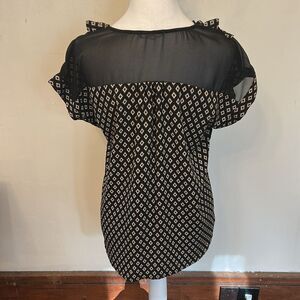 Pleione Black Patterned Flutter Sleeve Ruffled Blouse Size XS EUC
