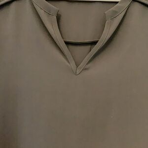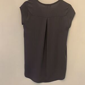 Pleione gray V neck, cap sleeve blouse. Size XS. Slightly longer back hem 28”