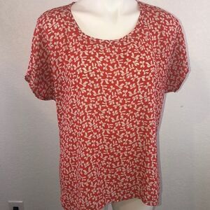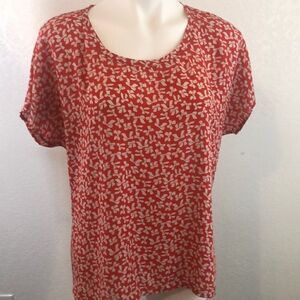 Pleione red bow print top • rounded neckline • short sleeve • style #WQZ54648 • 24” shoulder to hem • 23.5” armpit to armpit