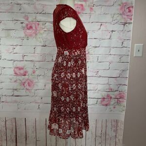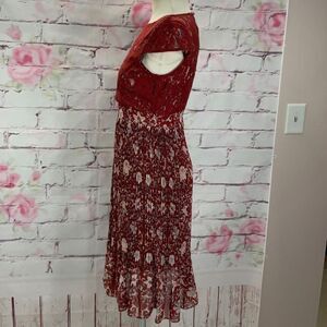 Plenty Anthropologie Women's Arcadia Accordion Pleated Laced Midi Dress Brown Size 2