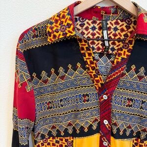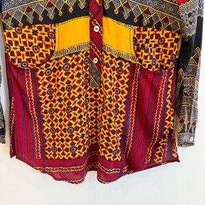 Plenty By Tracey Reese Women’s Vibrant Tribal Printed Button Down Blouse Size XS