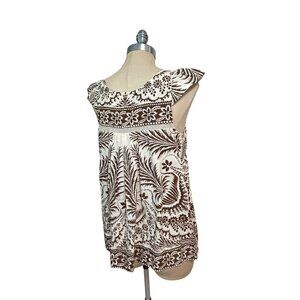 Plenty By Tracy Reese Brown & White Floral Sleeveless Cotton Tunic Top Size 6