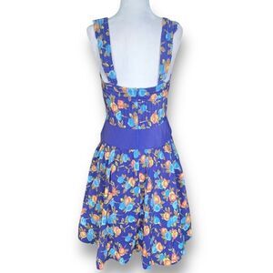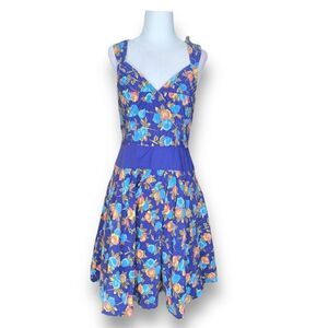 Plenty By Tracy Reese Dress Blue Yellow Floral Retro Sleeveless Sweetheart Neck