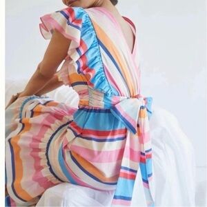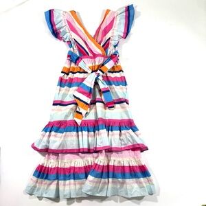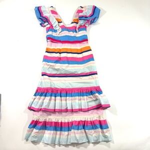 Plenty By Tracy Reese Ruffle Maxi Dress Size SP Rainbow Stripe MINOR FLAW