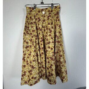 Plenty By Tracy Reese Women Size 4 Floral A-Line Midi Skirt Yellow Brown Pockets