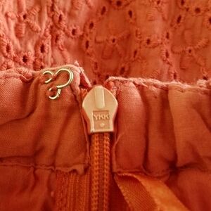 Waist flat lay 12.5in Length 21in Very good condition! Side zipper closure, missing thread to hold hook on inside closure