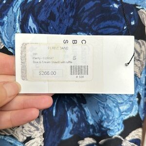 Plenty Frock! By Tracy Reese Blue & Cream Sheath Dress with Ruffle hem - Small