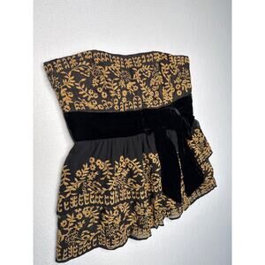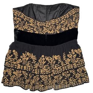 Plenty Tracy Reece silk strapless gold black velvet beaded tiered formal top 8