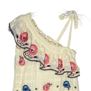 Plenty Tracy Reese Dress Girls 7/8 Cream Pink Blue Floral Ruffle Boho Peasant