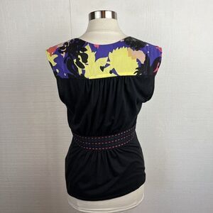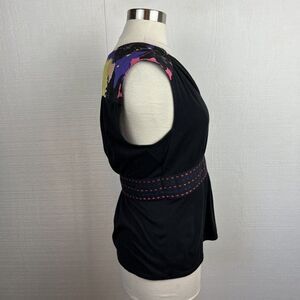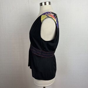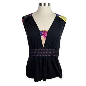 Plenty Tracy Reese Tank Top M Womens Black Floral Print Cotton Blend V Neck