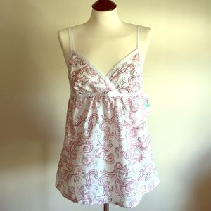 Super cute halter top by Plenty by Tracy Reese. New with tags, purchased on sale at Neiman Marcus. Fully lined with one piece of boning on the side opposite the zipper to keep shape. The navy and purple "t" is silk. Wooden beads on the neck tie. Perfect for summer! Does have one very tiny spot as shown, may be able to dry clean it out, I didn't want to take the tags off. size 8, but I think it runs small and fits more like a 6.