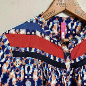 Plenty by Tracy Reese Anthropologie Boho Batik Print Blouse Rayon XS Flowy