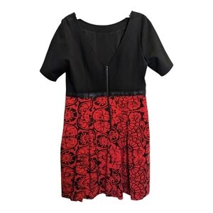 Plenty by Tracy Reese Anthropologie red black v back midi dress with pockets