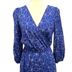 Plenty by Tracy Reese Blue Pinwheel Print Faux Wrap Asymmetrical Ruffle Hem Dress Women’s Small