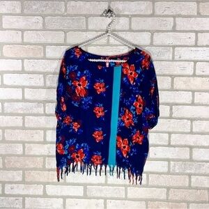 Plenty by Tracy Reese Floral Print Short Sleeve Tassel Hem Blouse Size XS