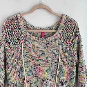 Plenty by Tracy Reese Rainbow Confetti slub scoop neck 3/4 sleeve sweater sz S