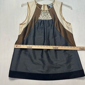 Plenty by Tracy Reese Silk Tunic Blouse L Sequin Sleeveless Colorblock Mod Retro