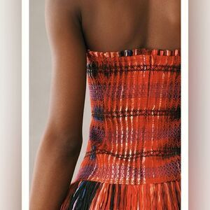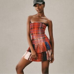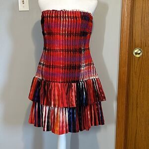 Plenty by Tracy Reese Strapless Tiered Mini Dress red smocked size L NEW
