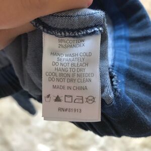Color block stripes. Cotton and spandex. Collar. Stretch band waist. Unlined.