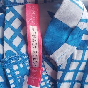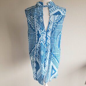 Plenty by Tracy Reese Top Blue Lightweight Soft Pleated Hi Low Geometric Size M