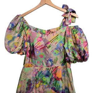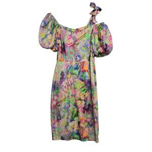 Plenty by Tracy Reese Womens Small Floral Sheath Dress Off Shoulder Puff Sleeve
