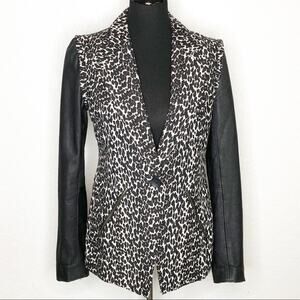 Plenty by Tracy Reese animal print leather sleeve jacket size 4