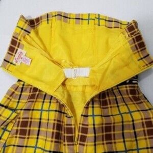 Strapless dress with built in bra supports. Open top wide pouch pockets near hips. Black and white tribal swirl waistband for a flattering fit and flare style silhouette. Hidden zipper up the back and gathered bust. Just above knee length. Silk and linen. Size 0, please see photos for approximate measurements. In excellent used condition worn one time. Yellow, brown and blue tartan plaid check pattern. Twee Zooey Deschanel Jess from New Girl or Cher from Clueless cute emo vibes, wear with a black corset and it becomes a little punk. Sold at Anthropologie, Plenty by Tracy Reese dress. $250 retail