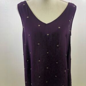 Plenty by Tracy Reese NWT Studded Flyaway Eggplant Loose High Low Oversized Dress Women’s Size XS. Une stud missing in the back please watch pictures carefully.