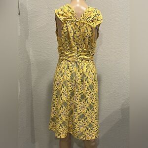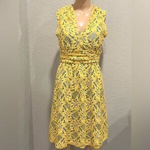 Plenty by Tracy Reese, Yellow lace dress with blue lining, keyhole in the back and zipper closure. Length approx 36.5”. Bust (flat) approx 15.5” shell: 90% nylon 10% rayon. Lining 100% polyester