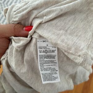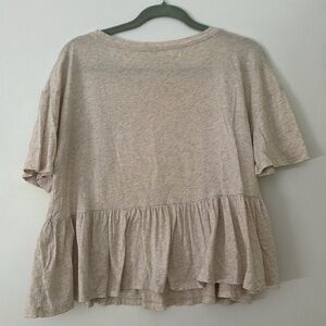 Heather beige t-shirt with flared bottom. Fits very loose for a medium could easily fit large depending on the fit