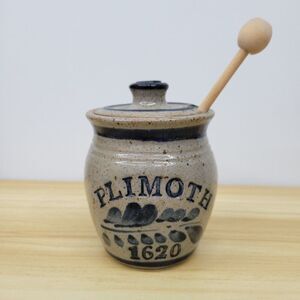 Plimoth 1620 Stoneware Honey Pot with Lid and Dipper – Historic Reproduction
