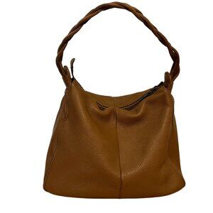 Plinio Visona Italy Classic Minimalist Toffee Brown Pebble Leather Hobo Bag