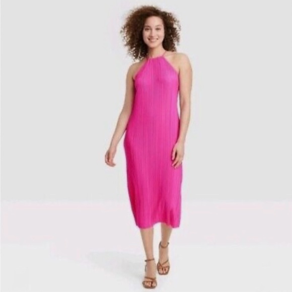 Beautiful pliss dress in hot pink. Flowy perfect for spring or summer event. A New Day brand from Target.