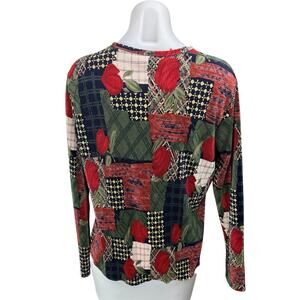 Plisse Red Multicolor Corduroy Patchwork Long Sleeve Button Up Blouse Top Size L