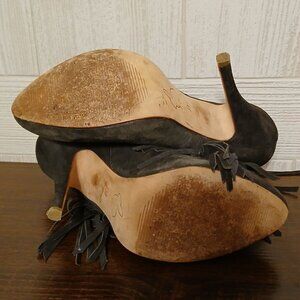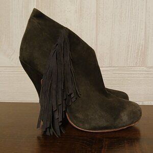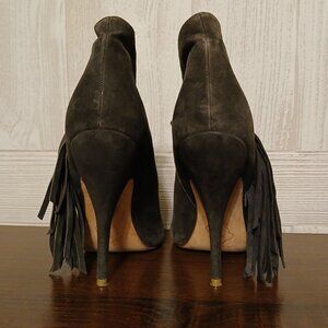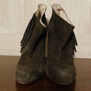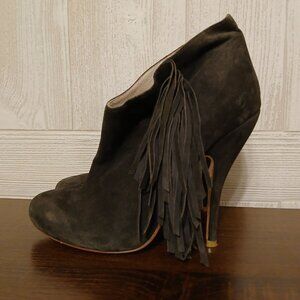 Plomo Size EU 39/US 8.5 Gray Suede Fringe Pull-On Ankle High Heels Andie Boot
