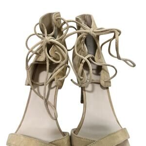 Plomo Suede Lace-Up Heels Sandals Size 37 (US 6.5-7) Open-Toe Ankle Stiletto