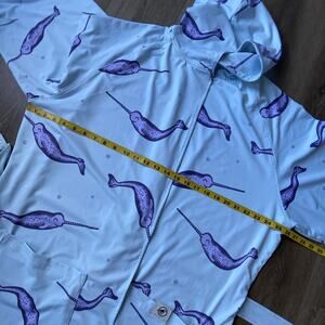 Plover Anywear Robe Unisex One Size Fits Most Blue Narwhal Print Pocket Nautical