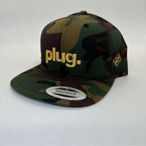 Plug Camouflage with Gold Metallic Lettering SnapBack Yupoong Hat New
