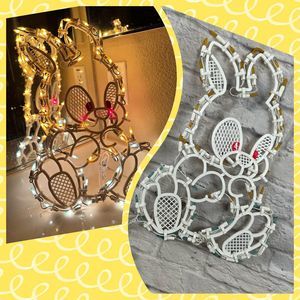 Plug-In Light-Up Indoor Easter Bunny Rabbit Sculpture 50 Lights 18" Window Mount