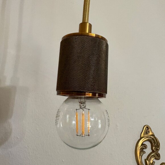 Brighten your space with this stylish plug-in pendant light featuring a brass socket, 15-foot gold fabric cord, and a convenient inline switch. Easy to hang — no hardwiring required! Just plug it in and enjoy warm, elegant lighting anywhere.