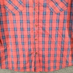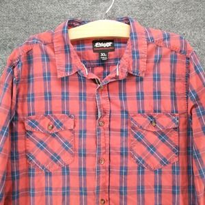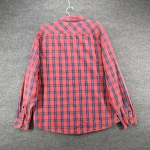 Plugg Men's Button-Up Shirt Red Blue XL Long Sleeve Plaid Chest Flap Pockets